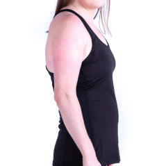 noticeable on the arms and/or
